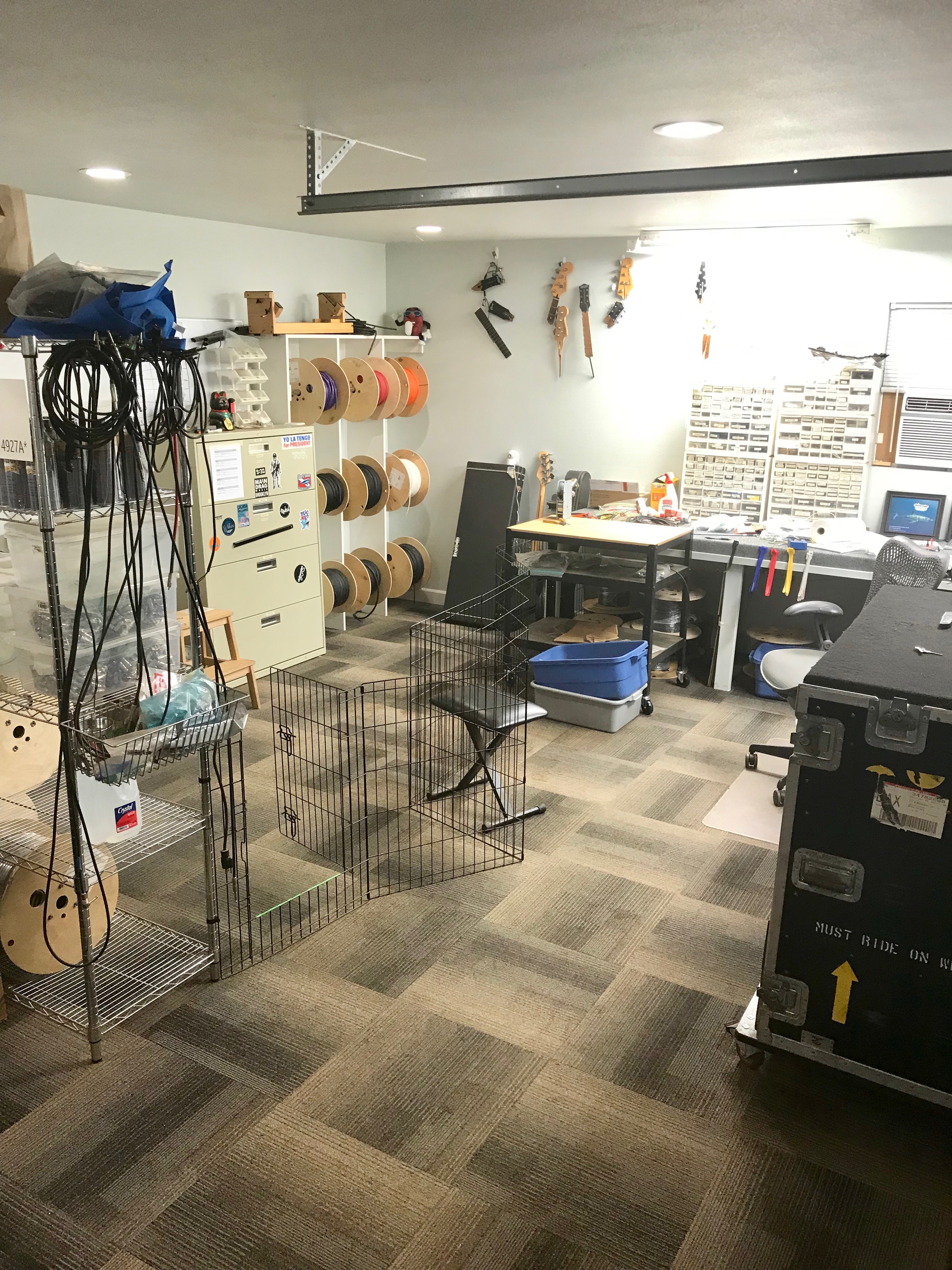 After years of being cramped in their 280sqft original shop in the back part of their house ( the floors were bowing in their store room from the sheer weight of all the spools of cable!), so in 2017, they built a 900sqft separate workspace in their backyard, establishing their own autonomous, dedicated space away from the skyrocketing rents that are now commonplace in Portland.