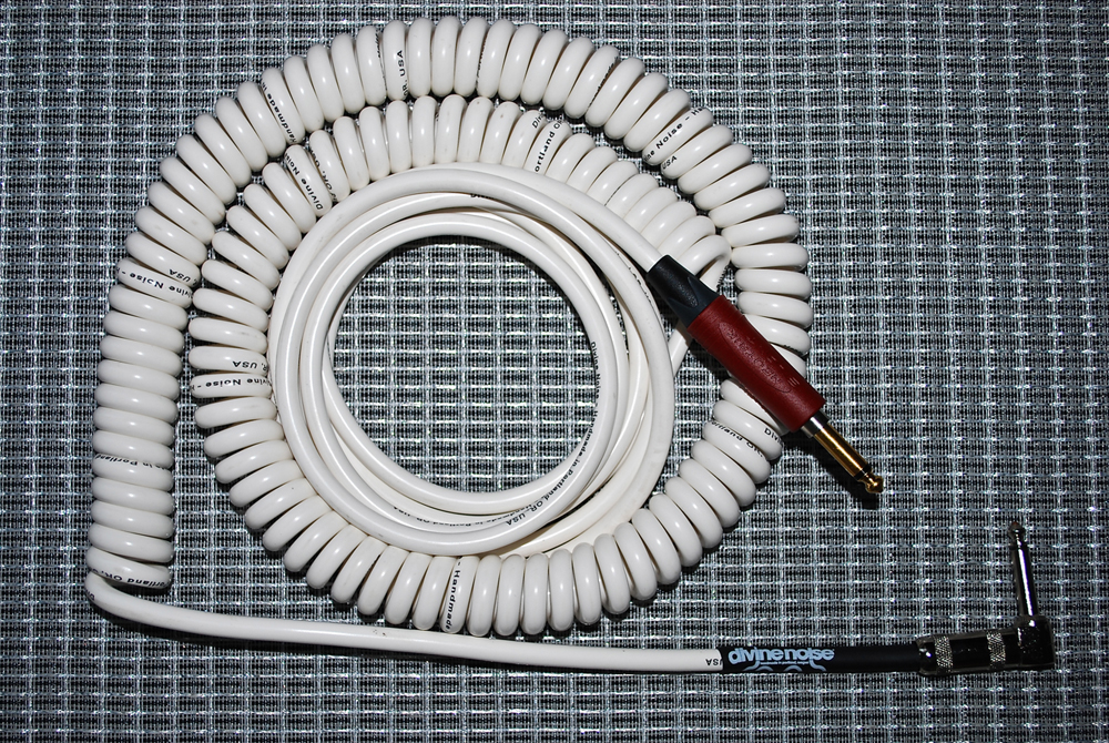 coiled guitar lead maintains it’s curly shape through the pushing and pulling of rigorous use.